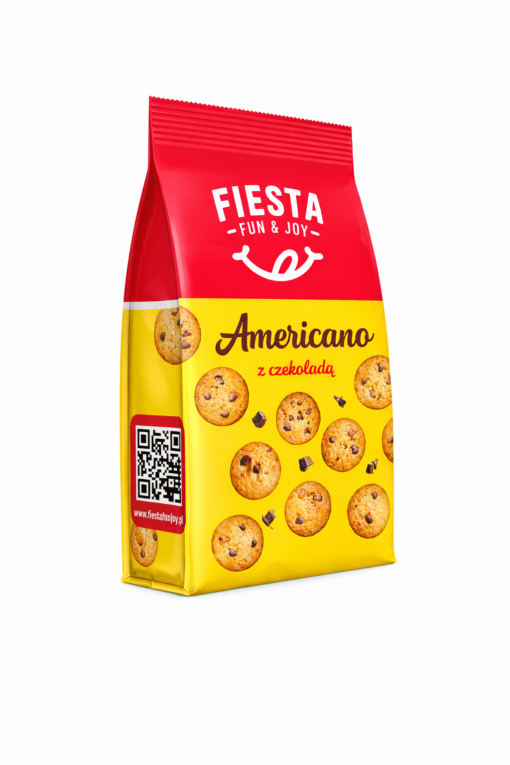 Fiesta Americano z czekoladą to klasyczne ciasteczka typu cookies inspirowane amerykańską recepturą. Wypiekane na złocisty kolor i wypełnione kawałkami czekolady, zachwycają intensywnym smakiem oraz przyjemną, kruchą strukturą.